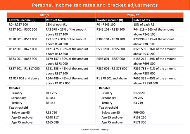 Hidden in the long grass of the budget there is a lot more unburdening. Adjustments are being made not only to the tax bracket, but to everything from the VAT threshold to tax-exempt employment benefits. (Who knew that you could not be taxed on the first R5,000 you receive as an award for bravery and long service? That has now been increased to R16,000!)