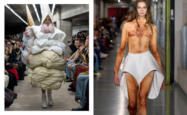 Left: Rei Kawakubo’s Comme des Garçons. Right: Jean Paul Gaultier.