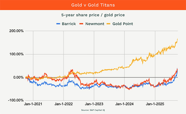Arguably, both companies’ strategies need to seen in light of how their shares have performed since gold began its momentous run. Barrick’s stock is up 23% over the past five years, while Newmont’s is up 33%. That’s okay, but it’s easy to imagine some very intense shareholder frustration behind the scenes, as the gold price has almost doubled over the same period.