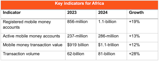 Mobile money has changed the way people handle payments in Africa, with more than 1.1-billion registered mobile money accounts in 2024, reflecting a 19% increase from the previous year. Active accounts in 2024 rose by 13% to 286-million, demonstrating both broad adoption and growing usage.
