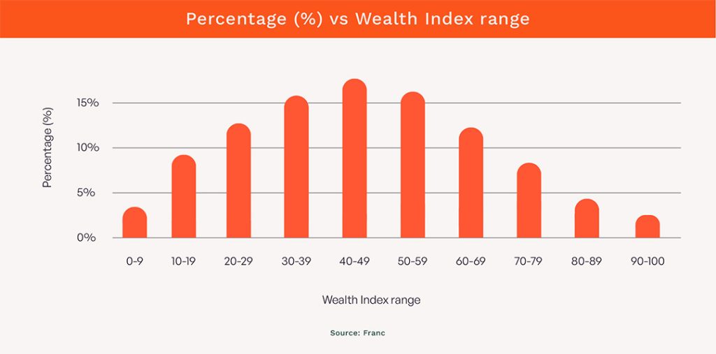 South Africa’s inaugural Franc wealth index, a large survey of financial wellbeing, finds that what people do with their money matters far more than how much they earn – giving individuals a glimmer of hope in that, while they don’t have agency over the level of their income, they do over how they use it.