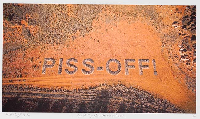 Willem Boshoff put an entirely different spin on the idea of “landscape art” with his Earth Signal pieces. The four prints from the series going under the hammer depict a land artwork he did in 2014. The idea sprung from the artist imagining what the earth would say if it could. Given man’s treatment of our natural surrounds, it’s not hard to see why he settled on “Piss-off”.