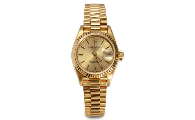 Our top lots are a fabulous little glass bottle with stopper by the late pioneering South African glass artist Shirley Cloete, and an undeniably fabulous lady’s gold Rolex Oyster Perpetual Datejust wristwatch, which already has a bid for R100,000 on it.