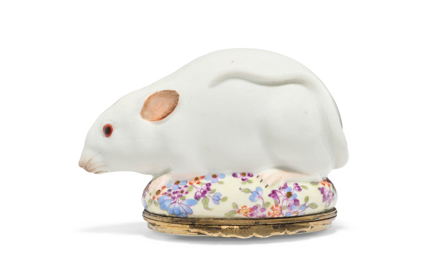 We found it hard to play favourites here, but settled on a Cartier enamelled gold cigarette case and matching lighter that made us long for days of chain-smoking in a glamorous Fifth Avenue townhouse. Failing that, we rather fancy a silver-gilt mounted Meissen porcelain mouse-form snuff box and cover for absolutely no reason whatsoever.