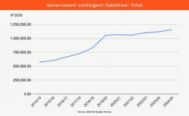 South Africa’s contingent liabilities have doubled in the past 10 years. That could technically add 10%-15% to the country’s national debt, leaving economists and ratings agencies concerned.