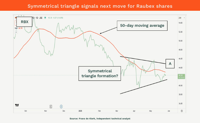 A critical marker for medium-term sentiment is the 50-day moving average, currently at R43.12. If Raubex climbs above this line, it could indicate the first signs of strength. Until then, the trend is still considered weak.