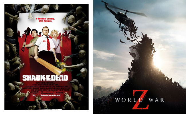 From Dawn of the Dead to 2004’s Shaun of the Dead – a zombie comedy directed by Edgar Wright and written by Wright and Simon Pegg – we go from grim to gleefully gory. This is a love letter to classic zombie films, especially Romero’s slow-walking undead.