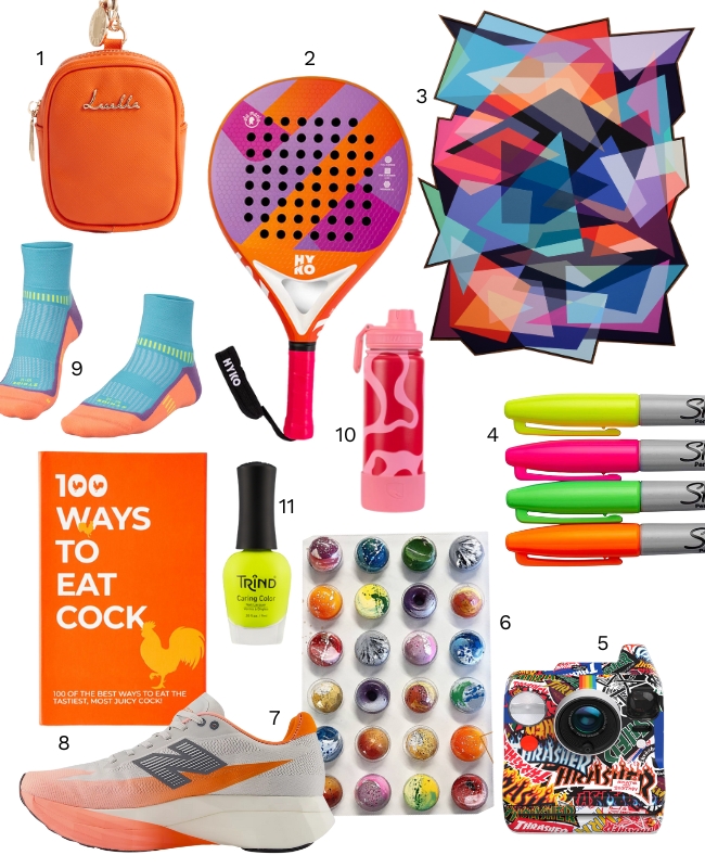 Have to pick something out for the person who believes that there’s no such thing as too much bright colour? Look no further. We’ve sorted through the mire of dire and found brilliant bits and pieces that look like they came out of the sour-gum mix at the sweet shop.