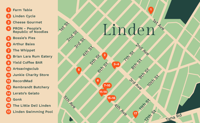 If you’re new to the area, here’s a quick sketch: the northwest suburb is a quietly compelling mix of old-school vibes and mid-century bones. Think: yellow brick cottages upgraded to be big family pads, plenty of mature trees (a tree even gives Linden its name), wide avenues, and a centre grid of walkable streets lined with shops, cafés and eateries. It’s not about flash – Linden’s coolness is subtle, rooted in character, community and discovery.