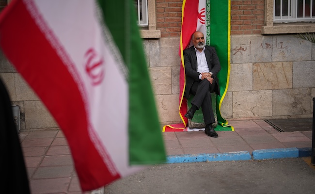 Top image: A man sits beside an Iranian flag banner during a government-sponsored protest attended by medical workers against the US-Israeli military campaign in Tehran on April 6. Picture: AP Photo/Francisco Seco.